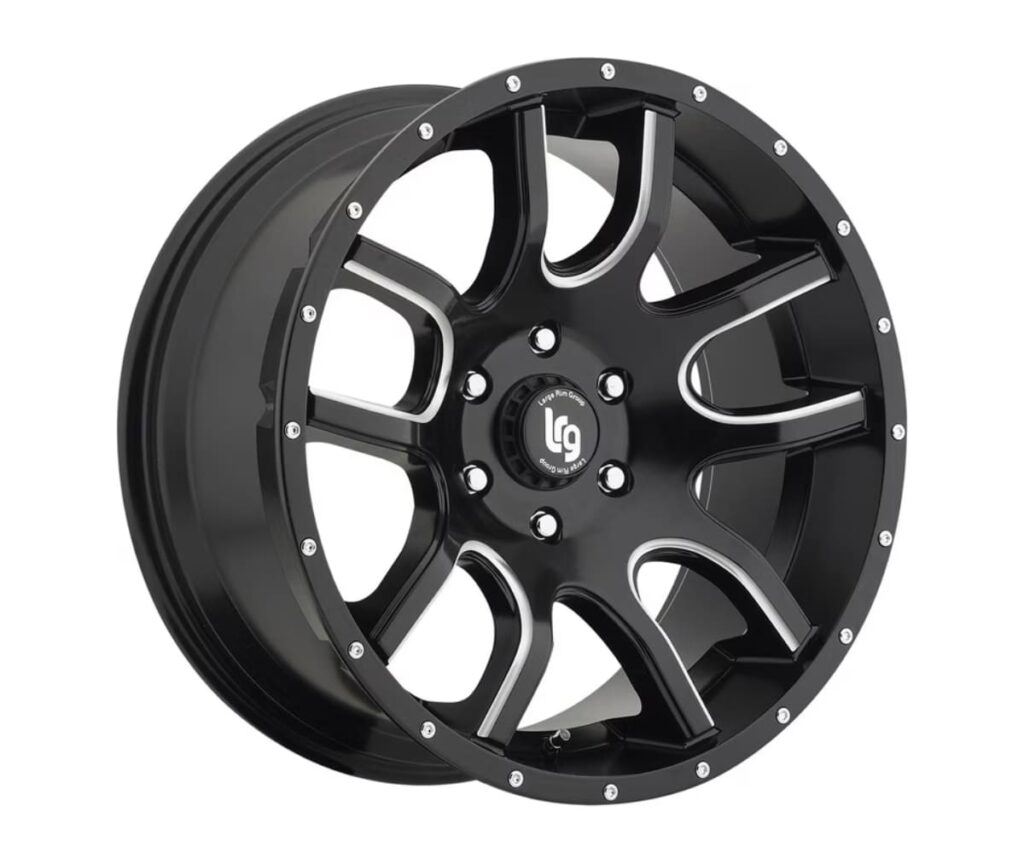 Popular finishes include satin black with natural milled accents, and all wheels feature signature LRG logo center caps to elevate your vehicle’s appearance.